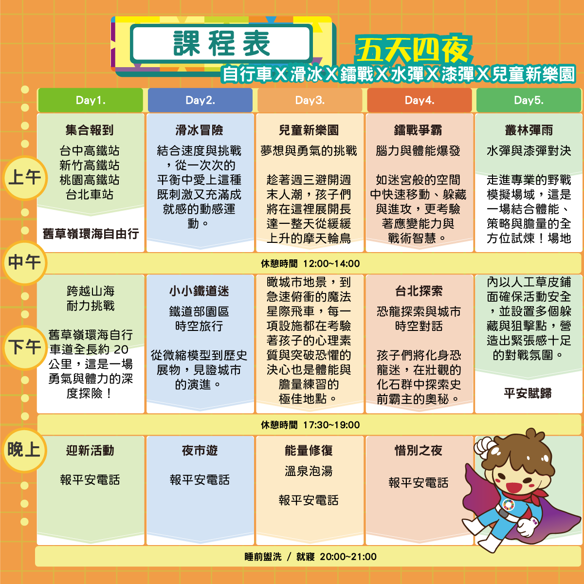 1.如有活動相關規範,或任何需要事前告知家長請條列事項。