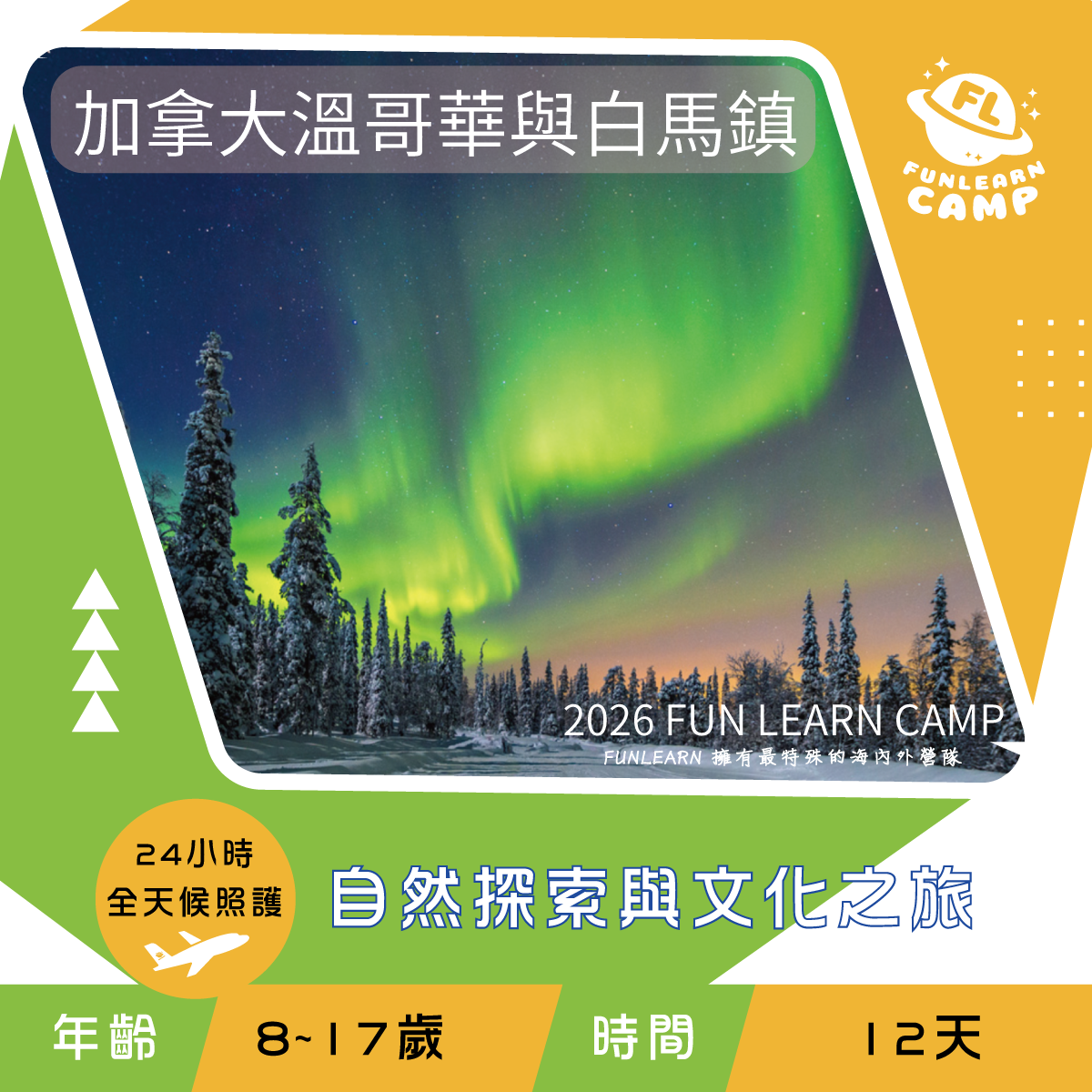 營隊天數:12天10夜 營隊地點:加拿大白馬鎮/溫哥華 集合地點:桃園機場